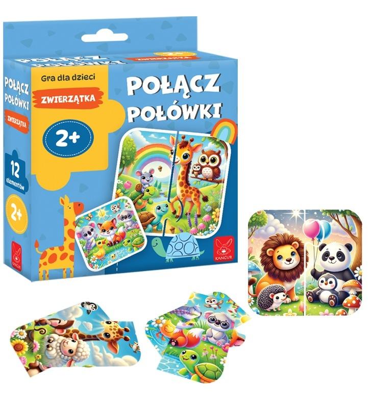 Opis produktuZasady bezpieczeństwaDzieci bawią się w układanie połówek puzzli ciekawych zwierzątek. Gra wspomaga u dzieci koncentrację, rozwój ruchu dłoni oraz wspomaga myślenie przestrzenne. Zawartość pudełka: 12 elementów, 6 układanek x