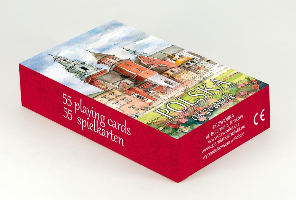Talia brydżowa, ozdobna z wizerunkami polskich miast. (55 listków)