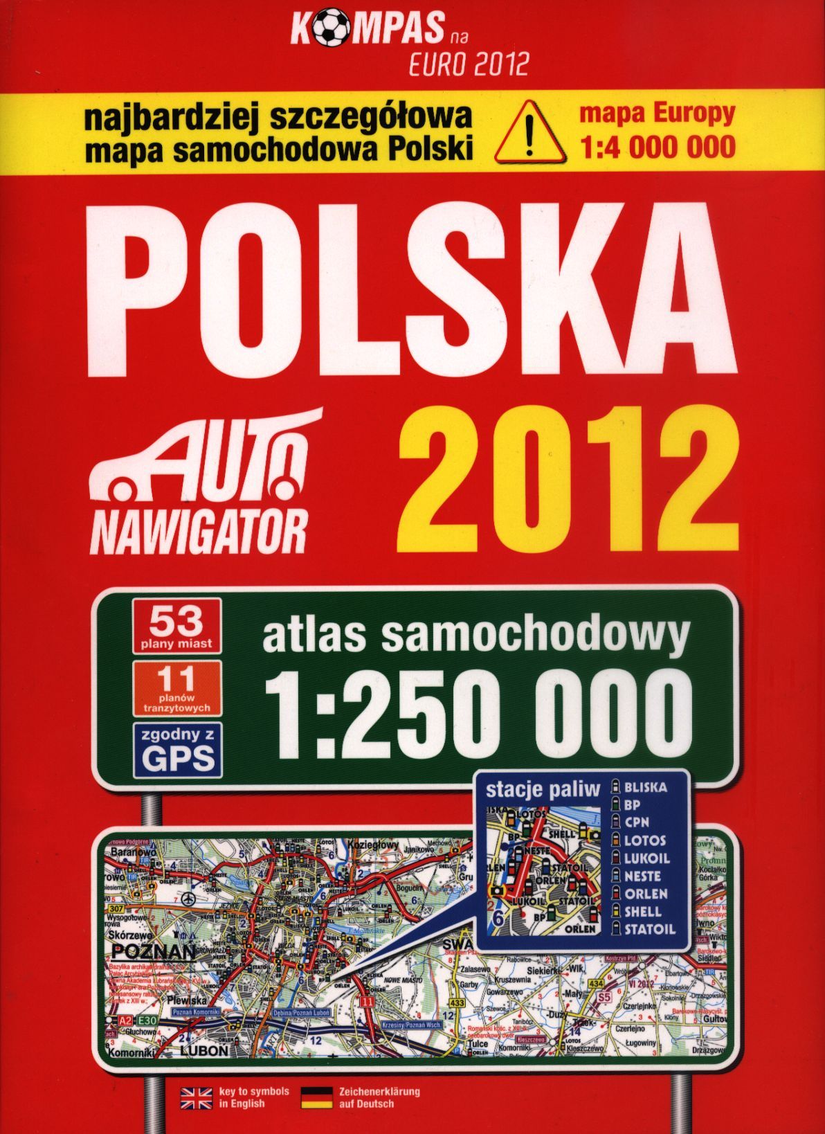 Uzupełnione i bardziej rozszerzone wydanie atlasu samochodowego Polski w skali 1: 250 000. Tegoroczny atlas został poszerzony o nazwy węzłów na drogach ekspresowych, w tym także na budowanych i planowanych. Pomocnym dla kierowców dodatkiem są informacje o istniejących oraz przygotowywanych Miejscach Obsługi Podróżnych przy autostradach i drogach ekspresowych.Ponadto zawiera: ♦ lokalizację stacji benzynowych 9 największych sieci na obszarze całego kraju: BLISKA, BP, CPN, LOTOS, LUKOIL, NESTE, ORLEN, SHELL, STATOIL,♦ pełną sieć dróg krajowych, wojewódzkich, powiatowych i gminnych,♦ imponującą liczbę zaznaczonych miejscowości - ponad 70 000 miast, osiedli i wsi,♦ aktualne informacje o autostradach i innych drogach budowanych i planowanych do 2015 r.♦ plany 53 miast Polski,♦ tranzytowe plany 11 miast i aglomeracji,♦ miejsca noclegowe i parkingi,♦ atrakcje turystyczne opisane bezpośrednio na mapie, ♦ mapę Europy w skali: 1:4 000 000.♦ legendę w 3 językach: polskim, angielskim, niemieckim. Atlas jest zgodny z GPS.