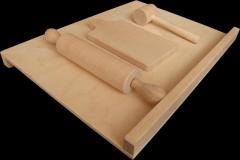 Komplet składający się z drewnianej stolnicy, wałka, deski oraz tłuczka zachęca do czynnego poznawania zajęć wykonywanych w gospodarstwie domowym. Wszystko w dostosowanym do dziecka mniejszym rozmiarze.
