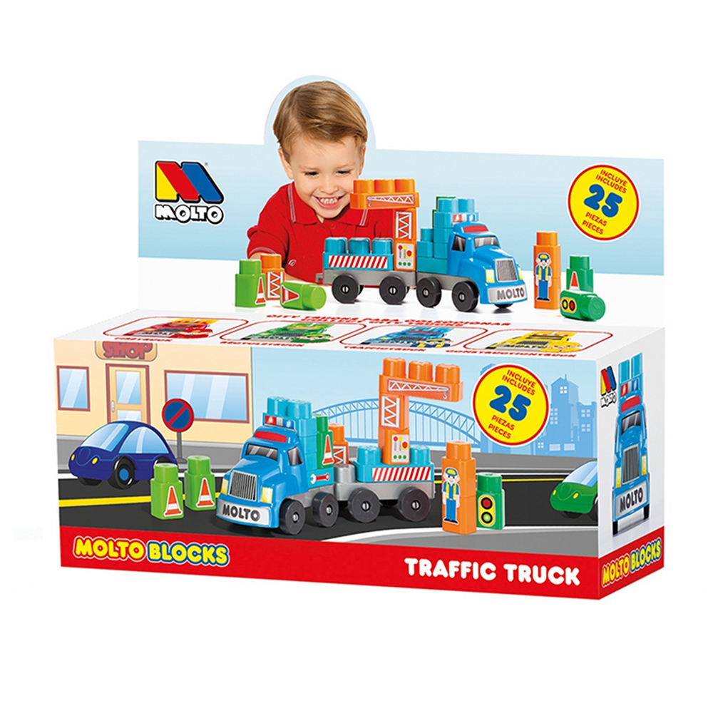 Samohód do samodzielnego zbudowania, składający się z 25 el. Ciągnik plus naczepa. W zestawie znajdziemy figurkę kierowcy pomocy drogowej oraz kocki z naklejkami dotyczącymi pomocy drogowej.