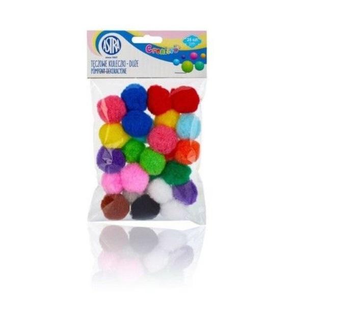 Pompony dekoracyjne 30mm tęczowe kuleczki duże 25 sztuk