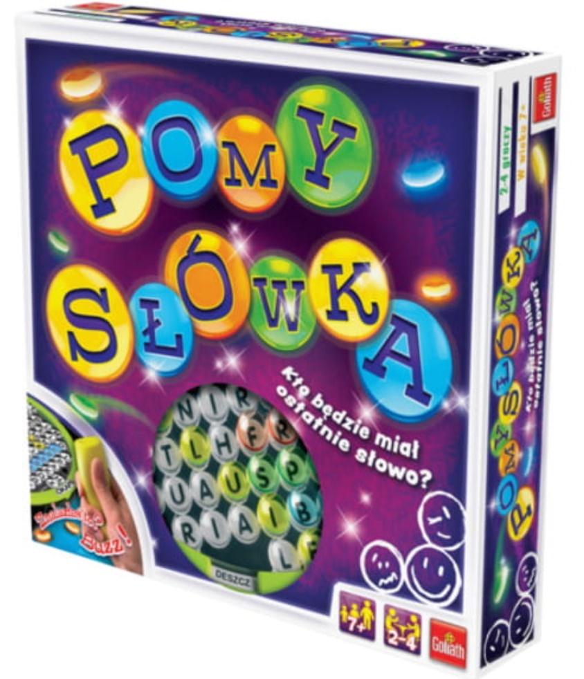 PomySłówka to gra słowna, symultanicznie rozgrywana, bazująca na wszystkim znanej mechanice wykreślanki. Ta gra to jak odkrycie koła na nowo, proste zasady wymagająca gra. Skup się, wytęż wzrok i znajdź poszukiwane słowo! To nie takie łatwe. Komu pierwszemu się uda? Znalazłeś je? Połóż swoje żetony na planszy. Wygrywa ten gracz, którego kolor na koniec zdominuje planszę. Gra, w której trzeba umieć się skupić! Rozwija słownictwo i zdolności językowe. Spróbuj także zmierzyć się z grą w języku angielskim lub niemieckim Opakowanie zawiera: 1 baza PomySłówka, 10 dwustronnych plansz (20 różnych tematów gry), 470 żetonów znaczników w kolorach graczy (czerwony, żółty, zielony, niebieski), 1 instrukcja. Tematy kart to : Dom, Farma, Kosmos, Kraje, Miasta, Plaża, Zwierzęta, Rośliny, Woda, Morze, Fantastyka, Ciało, Kolory i kształty, Jedzenie, Kuchnia, Minerały, Muzyka, Szkoła, Transport, Ubranie.