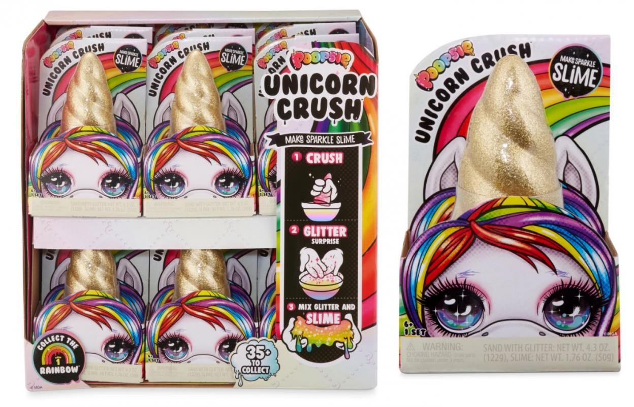 Opis produktuZasady bezpieczeństwaPoopsie Unicorn Crush (36szt) Zrób magiczny, błyszczący slime z Poopsie Unicorn Crush! Rozpakuj róg jednorożca, aby znaleźć kolorowy slime. Zanurz róg w wodzie na 10 sekund, a następnie zmiażdż! Znajdź pachnący slime i zmieszaj go z brokatem. Odkryj ponad 35 kolorów slime'u. x