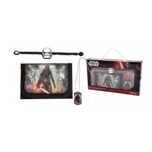 Prezentowy zestaw, portfel z opaską na rękę i nieśmiertelnikiem, z wizerunkiem Kylo Ren.