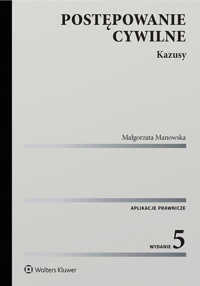 Opis produktuZasady bezpieczeństwaKsiążka stanowi zbiór 59 kazusów z postępowania cywilnego wraz z odpowiedziami i komentarzami pomocnymi aplikantom radcowskim i adwokackim w dokładnym przygotowaniu się do egzaminów końcowych. W opracowaniu zwrócono uwagę na problemy praktyczne, z jakimi może się zetknąć radca prawny i adwokat w toku sprawy cywilnej. W udzielanych odpowiedziach znajdują się odesłania do orzecznictwa Sądu Najwyższego i sądów powszechnych, praktyki sądowej, a także do poglądów doktryny. Piąte wydanie książki uwzględnia nowelizacje wprowadzone do kodeksu postępowania cywilnego kolejnymi ustawami, aż do dnia 1 stycznia 2024 r. Część kazusów, wobec pojawiających się nowych problemów w praktyce, zostało zastąpionych nowymi, część została jedynie uaktualniona, a niektóre zmienione tak, aby uwzględnić najnowsze poglądy wyrażane w orzecznictwie. Materiały wykorzystane w książce są efektem wieloletniej pracy Autorki z aplikantami radcowskimi i adwokackimi w ramach aplikacji organizowanej przez Okręgową Izbę Radców Prawnych oraz Okręgową Radę Adwokacką w Warszawie. Publikacja jest przeznaczona dla aplikantów adwokackich i radcowskich. Zainteresuje również aplikantów sądowych, studentów prawa, radców prawnych, adwokatów oraz sędziów. x