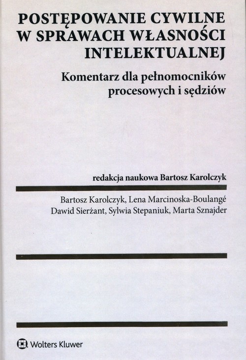 Opis produktuZasady bezpieczeństwaKsiążka stanowi praktyczny przewodnik dla zawodowych pełnomocników i sędziów w zakresie postępowań przed wyspecjalizowanymi sądami własności intelektualnej. Komentarz, przygotowany przez grupę praktyków z doświadczeniem procesowym w sprawach własności intelektualnej, problemowo analizuje kluczowe zmiany wprowadzone przez ustawę z 13 lutego 2020 r. o zmianie ustawy - Kodeks postępowania cywilnego oraz innych ustaw wprowadzającej postępowanie odrębne w sprawach własności intelektualnej. W związku z ww. nowelizacją od 1 lipca 2020 r. sprawy z zakresu własności intelektualnej są rozpoznawane przez specjalnie powołane do tego wyspecjalizowane sądy w odrębnym postępowaniu cywilnym, w ramach którego przewidziano nowe instytucje procesowe i zmieniono niektóre z dotychczas funkcjonujących w tego rodzaju sprawach zasad. Komentarz omawia sposób organizacji sądów ds. własności intelektualnej, przedstawiając jednocześnie odrębności nowego postępowania cywilnego w sprawach własności intelektualnej i zakres spraw, który jest nim objęty. Publikacja porusza kwestie praktyczne dotyczące m.in. relacji nowego postępowania w sprawach własności intelektualnej z innymi rodzajami postępowań, w szczególności postępowaniem w sprawach gospodarczych. W publikacji przedstawiono: o instytucje procesowe mające zapewniać dostęp do informacji i dowodów w postępowaniach z zakresu własności intelektualnej, tj.: zabezpieczenie środków dowodowych, wyjawienie lub wydanie środka dowodowego i wezwanie do udzielenia informacji; Komentarz zestawia nowo wprowadzane instytucje i środki z tymi już funkcjonującymi w polskim procesie cywilnym lub innych krajach europejskich, wskazując na kwestie problemowe i aspekty praktyczne ich stosowania z punktu widzenia pełnomocnika procesowego. Dodatkowo, publikacja uwzględnia wnioski płynące z analizy przeglądu orzecznictwa wydanego przez tzw. sądy IP od lipca 2020 r., które autorzy uzyskali w ramach dostępu do informacji publicznej. Książka zainteresuje sędziów, prawników praktyków zajmujących się zagadnieniami własności intelektualnej, zwłaszcza w aspekcie procesowym. x