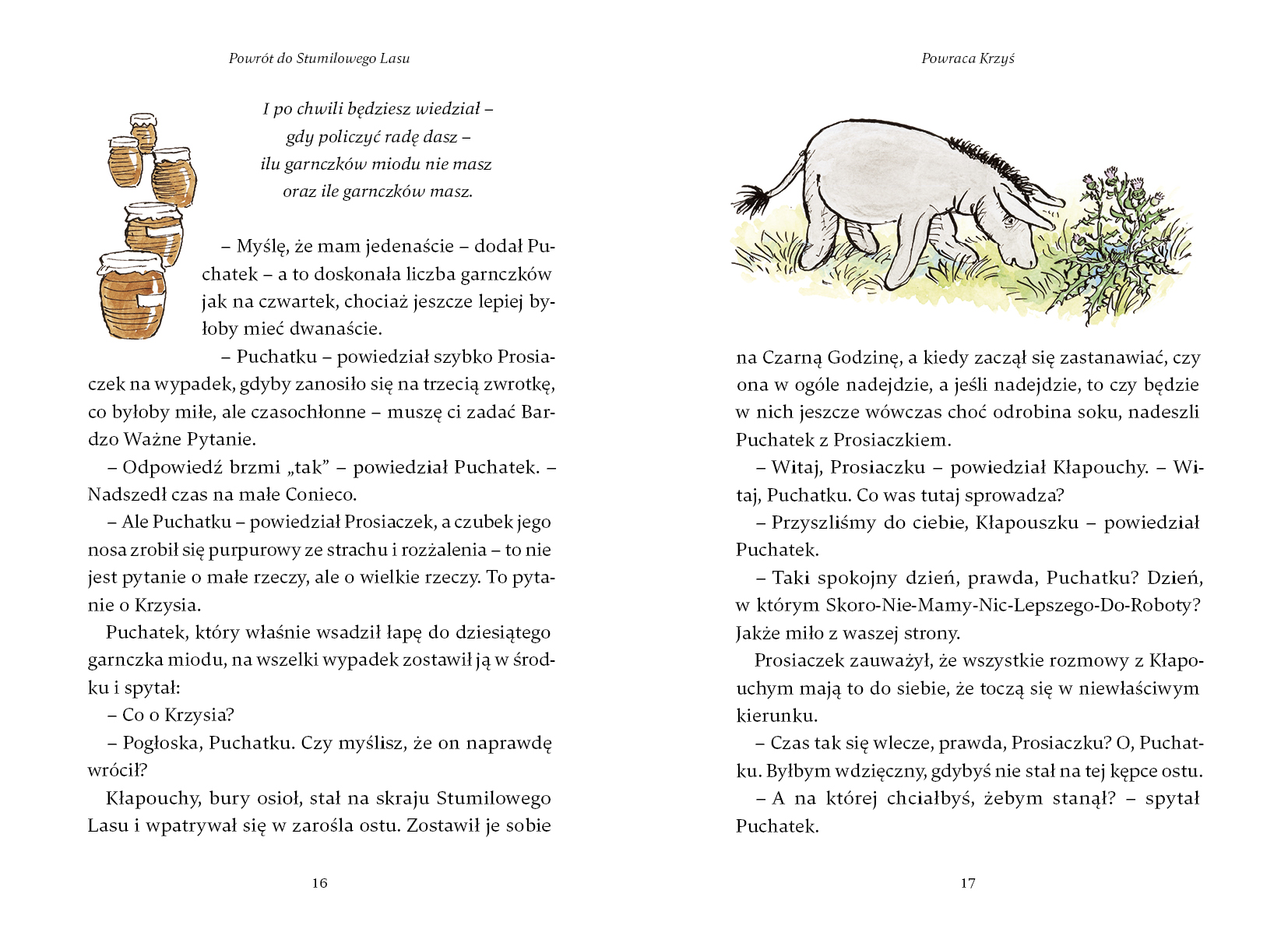 Opis produktuZasady bezpieczeństwaZe Stumilowego Lasu zniknęły mruczanki. Wszystko wskazuje na to, że zabrały je ze sobą pszczoły, opuszczając wydrążony dąb. A brak pszczółek oznacza brak małego Conieco! Roztargniony Kubuś Puchatek postanawia zwołać Zebranie Kryzysowe na leśnej polanie. x