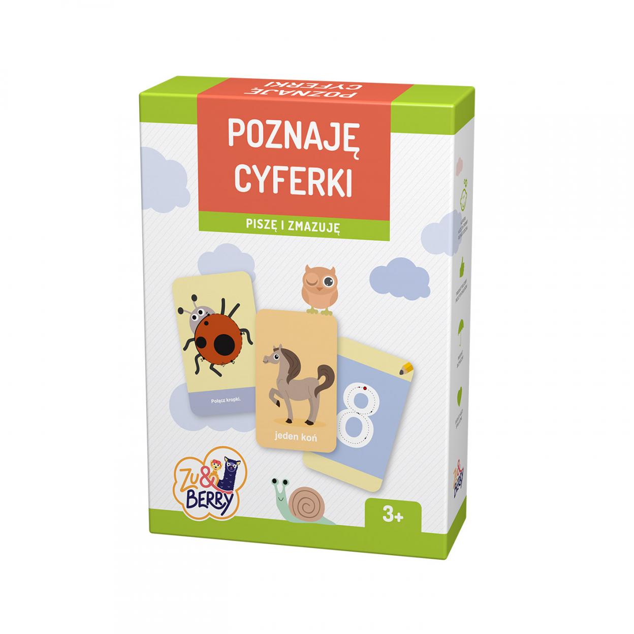 PIERWSZY KROK DO SWIATA LICZB. Poznaje cyferki to 32 dwustronne karty, dzięki którym przedszkolak łatwo opanuje pierwsze umiejętności matematyczne. Ilustracje cyfr pomagają małym raczkom pisać według wzoru, a także uczą prostych operacji matematycznych. Polecane przez psychologów od 3 roku życia. Już od najmłodszych lat, każdego dnia, dziecko bawiąc się uczy się czegoś nowego o sobie i świecie. Nawet najmniejszy maluch potrafi zaskoczyć swoją kreatywnością i zdolnościami w różnych dziedzinach. Na przykład w matematyce! Przedszkolak może opanować pierwsze umiejętności matematyczne. Ćwiczy spostrzegawczość i koncentrację Służą do pobudzania rozwoju małego dziecka. Wsparcie w nauce rozróżniania cyfr i liczenia w zakresie od 1 do 10. Dla starszych dzieci będą świetnym materiałem ilustracyjnym, pomocnym w rozwijaniu myślenia opartego na konkretach.