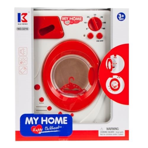 Najwyższy czas aby zrobić pranie. Pozwól dziecku na wykonanie tej czynności domowej własnoręcznie we własnej pralce MEGA CREATIVE Produkt ten idealnie odzwierciedla prawdziwy sprzęt domowy, wydaje odgłos piorącego się prania a po naciśnięciu czerwonego guziczka bęben pralki obraca się. Ponadto pralka posiada pokrętełko którym można '' ustawić temperaturę prania. Do pralki dołączono trzy wieszaki na pranie. Produkt wykonany z plastiku. Przeznaczony dla dzieci w wieku: 3+. Wymaga zasilania bateriami 3 x AALR6- nie załączono do zestawu. Wymiary opakowania (dł.x wys.x gł.) [cm]: 19x22x12.