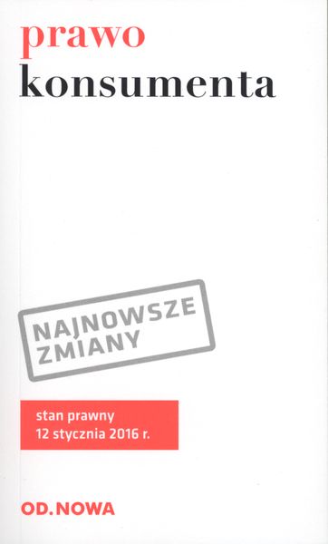 Publikacja zawiera tekst jednolity ustaw: o prawach konsumenta, o kredycie konsumenckimi, o ochronie konkurencji i konsumentów. Zaletą książki jest jej praktyczny, poręczny format, przejrzysty układ graficzny i niska cena. Łatwą orientację w materiale umożliwia obszerny skorowidz. Zmiany, oczekujące na wejście w życie umieszczono w ramkach. Stan prawny: 12 stycznia 2016 r.