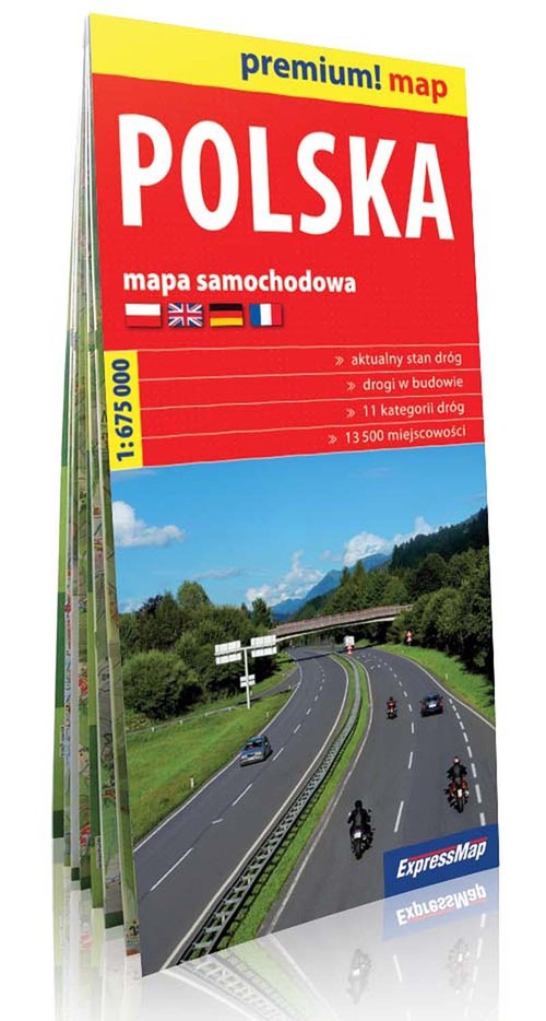 Mapa papierowa w trwałej i wygodnej kartonowej oprawie. Stan dróg 2010, budowane autostrady, drogi ekspresowe i krajowe, 9 kategorii dróg, autostrady i drogi ekspresowe wraz z węzłami, odległości drogowe w kilometrach, szczegółowa numeracja dróg, przejścia graniczne, promy samochodowe, międzynarodowe porty lotnicze, ponad 12 800 miejscowości, parki narodowe, skorowidz miejscowości.