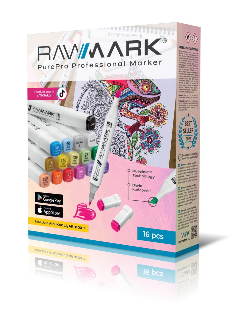 Opis produktuZasady bezpieczeństwaPurePro to popularne promarkery alkoholowe. Markery ze specjalnym tuszem idealnie nadają się do zastosowań profesjonalnych oraz amatorskich prób i nauki. Dzięk technologii tuszu pureINK, na bazie alkoholu, kolory łączą się idealnie. Jest to kluczowe przy cieniowaniu. Jeżeli szukasz palety do portretów i skóry - docenisz paletę 16ST. - Tusz szybko wysycha co zapobiega rozmazywaniu oraz brudzeniu dłoni - Tusz wnika w papier dzięki czemu po wyschnięciu tworzy powłokę wodoodporną - Kolory nie blakną dzięki czemu długo cieszą wyrazistością Markery posiadają 2 końcówki: - 1 mm (okrągła) - 6 mm (płaska) Okrągła końcówka posiada szary znacznik dzięki temu od razu wiadomo którą stronę się otwiera. Pozwala to zaoszczędzić czas i wykonywać profesjonalnie swój szkic. PurePro często wykorzystywane są przez grafików i designerów przy: - projektowaniu produktów - projektowaniu wnętrz - grafikach artystycznych - grafikach do animacji - szkicowaniu Technologia pureINK sprawia, że grafiki tworzone za pomocą PurePro wyglądają profesjonalnie. Idealne są również na prezent, aby obudzić w kimś pasję szkicowania i rysowania w profesjonalnym wydaniu. Paleta 14 odcieni do skóry + czarny + blender - pozwala na tworzenie grafik na różnorodnych powierzchniach: - papier - ściana - karton - ubrania x