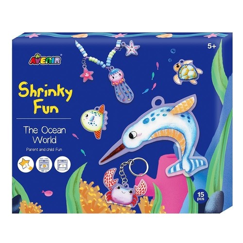 Zanurzcie się w wodnym świecie kolorowych ozdób. Avenir prezentuje termokurczliwe elementy, z których możesz wyczarować z dzieckiem, co tylko chcecie. Możecie zmienić je w biżuterię, breloczki czy cokolwiek innego - ograniczeniem jest Wasza wyobraźnia! Dzięki zestawowi wyczarujecie 15 kolorowych stworzeń morskich.