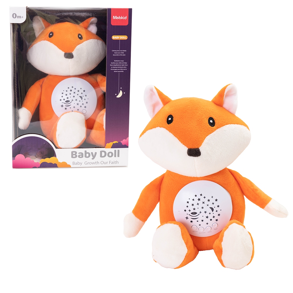 Opis produktuZasady bezpieczeństwaDelikatne wyciszające melodie lub dźwięki przypominające szum fal. Dodatkowo brzuszek liska mieni się kolorowymi światłami, a gdy w pokoju będzie ciemno wypełni się on kolorowo migoczącymi gwiazdkami. Dziecko może przytulać liska, ślinić, gryźć, ponieważ nie boi się on prania. Można wyjąć z niego moduł z melodyjkami i wyprać materiał. Lisek spełnia funkcje miękkiej przytulanki, przyjemnego usypiacza oraz lampki nocnej. Mechanizm można wyjąć i wyprać pluszaka. Wysokość - 30 cm. Wymagane baterie - 3xAAA (niedołączone). Wymiary opakowania: 19 x 13.5 x 26 cm Wiek 3 m+ x