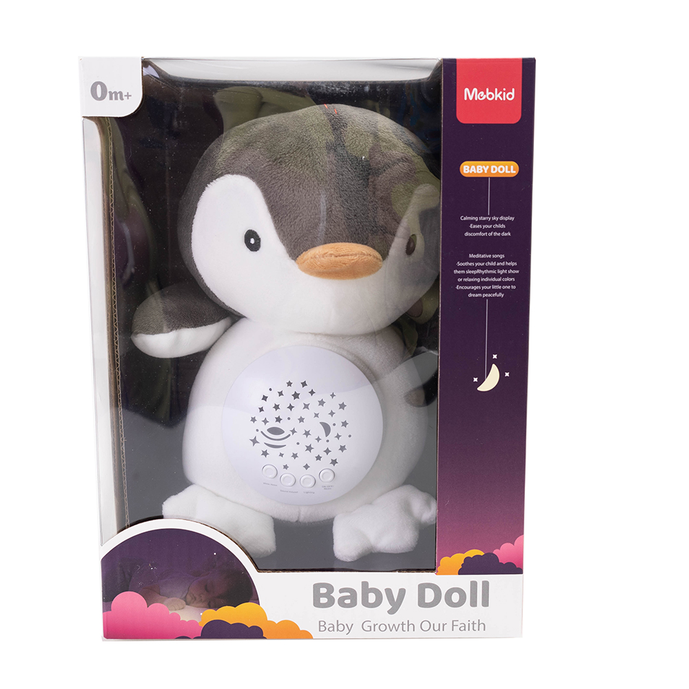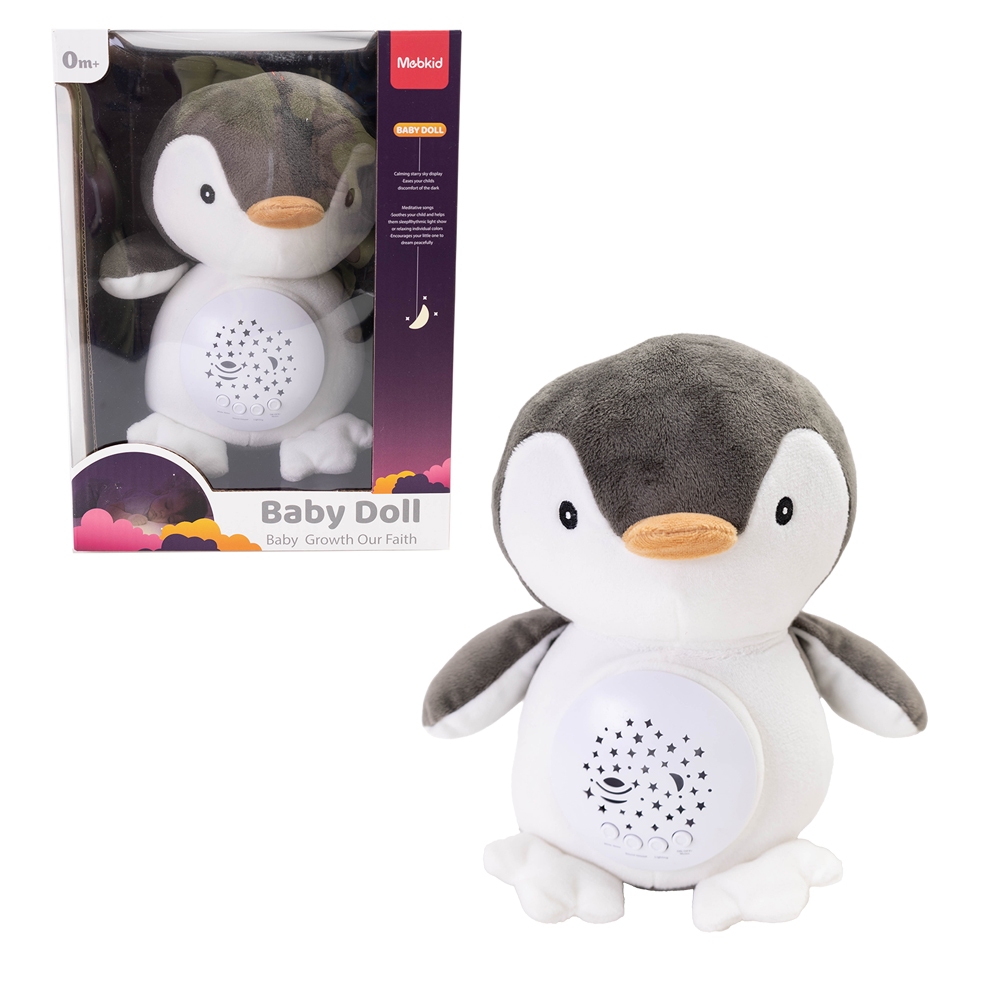 Opis produktuZasady bezpieczeństwaProjektor lampka - pingwin. Delikatne dźwięki muzyki. Kolorowy projektor, który wyświetla gwiazdki na ścianach lub suficie. Mechanizm można wyjąć i wyprać pluszaka. Wymiary opakowania: 26 x 19 x 14 cm x