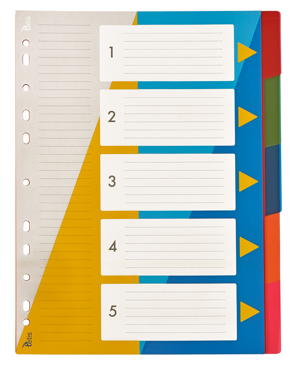 Przekładki numeryczne w formacie A4, numeracja 1-5. Grubość: 0,14 mm Opakowanie: folia 1 kpl.