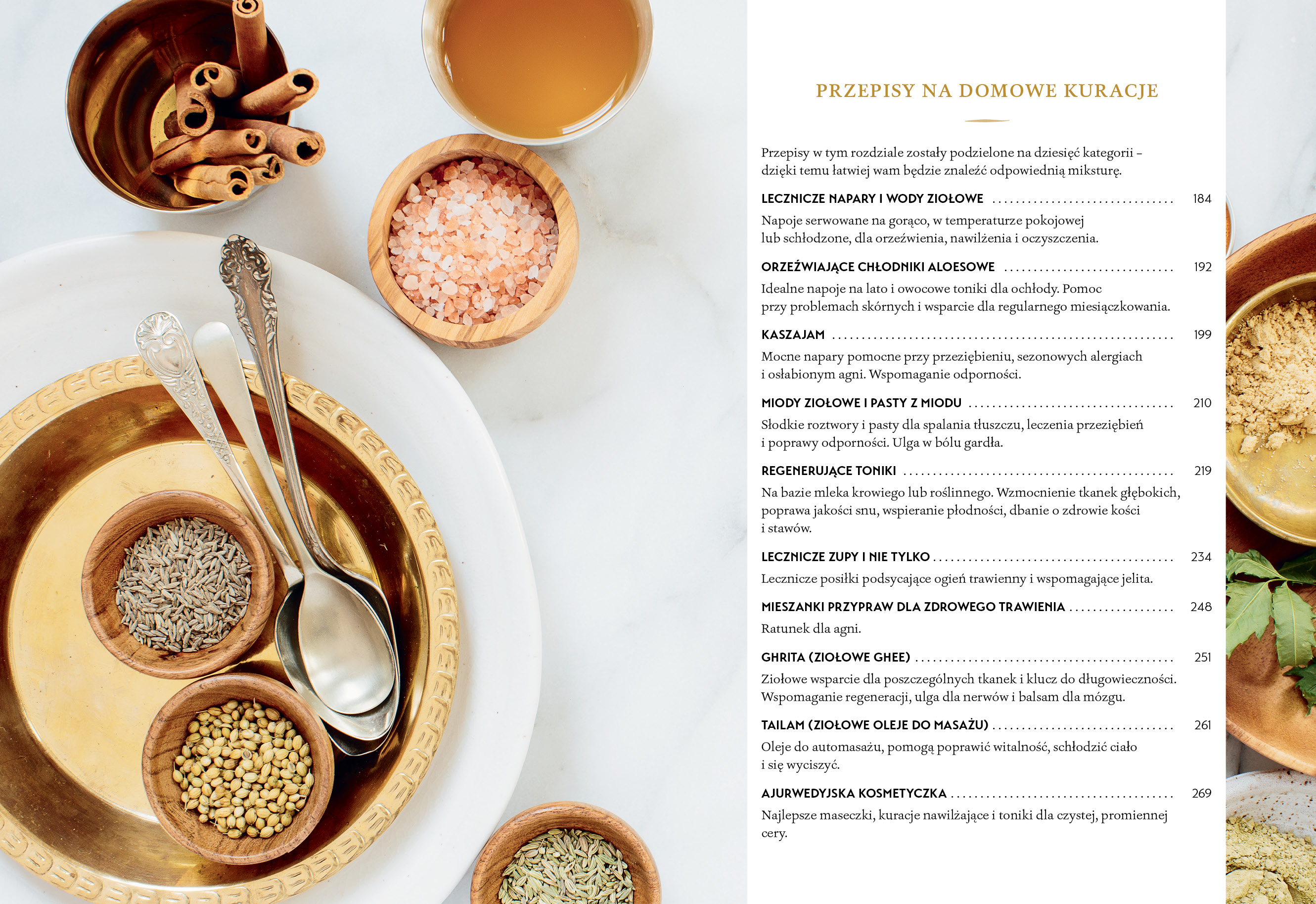 Ajurweda to idealne połączenie nawyków, pokarmów i ziół, które pomagają przywrócić utraconą równowagę. To najlepsze, co możesz podarować swojemu ciału i duszy. WHO uznało ją za najstarszy system opieki zdrowotnej na świecie. Tradycyjna medycyna indyjska wciąż pozostaje najlepszym sposobem dbania o siebie. Sięgnij po ajurwedyjskie supermoce! Dzięki tej książce: zmienisz styl życia i dopasujesz go do swojego ciała, etapu w życiu i pór roku; nauczysz się korzystać z leczniczych właściwości pokarmów, przypraw i ziół; dowiesz się, jak oczyścić organizm, zregenerować się, wspierać odporność i układ nerwowy; poznasz sekretne przepisy na lecznicze napary, regenerujące toniki, oleje i kosmetyki dodające blasku. ZADBAJ O ZDROWIE I ZAMIEŃ SWOJE CIAŁO W MIEJSCE MOCY Kate O'Donnell w piękny i przejrzysty sposób sprawia, że ajurweda staje się bliska i przystępna. dr Scott Blossom Autentyczne zasady ajurwedy, zrozumiałe dla współczesnego czytelnika w każdym zakątku świata, w połączeniu z bezcenną wiedzą na temat diety i stylu życia. dr Ramkumar Zwięzła, praktyczna instrukcja świadomego życia. Odkryj, jak dbać o zdrowie i połączyć różne jego aspekty w harmonijną całość. dr Robert Svoboda x