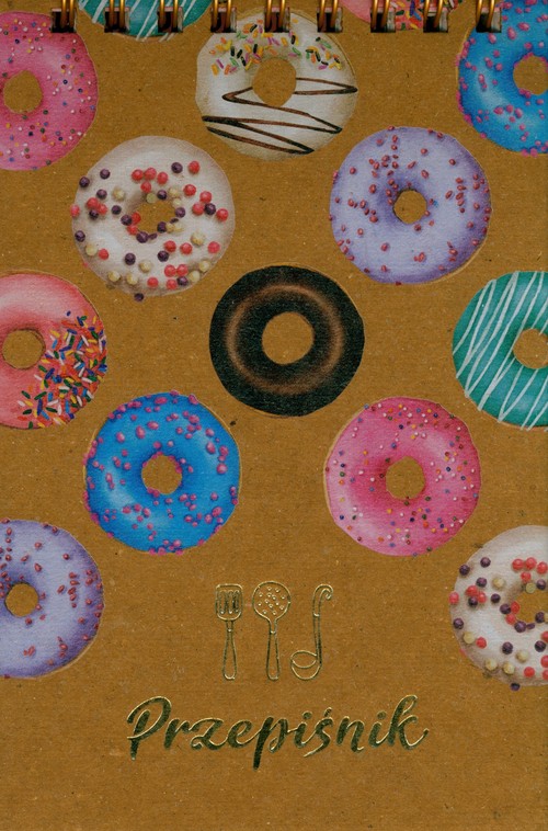 Oryginalny i funkcjonalny Przepiśnik. Słodko mi dla pasjonatów gotowania i nie tylko, doskonały do gromadzenia ulubionych przepisów. Podręczny format i kartki łączone za pomocą spirali pozwalają na wygodne wertowanie kartek. Całość spaja nietuzinkowa okładka z tektury z recyklingu, zadrukowana kolorowym wzorem, dodatkowo ozdobiona złoconymi detalami. Kartki w środku zostały zaplanowane na wypisanie wszystkich składników, poziomu trudności, czasu przygotowania oraz opisanie procesu przyrządzania potrawy. Notes zawiera graficzny przelicznik miar kuchennych.