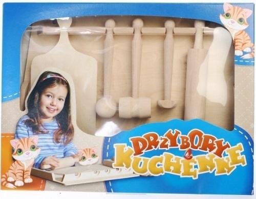 Opis produktuZasady bezpieczeństwaZestaw dużych przyborów kuchennych dla najmłodszych dzieci będzie dla nich świetnym prezentem a akcesoria w nim zawarte przydadzą się każdej małej gosposi . Realistyczny wygląd i kształty przyborów gwarantują fantastyczną zabawę i są okazją do pierwszych małych eksperymentów w kuchni. Przybory są starannie wykończone i bezpieczne dla dziecięcych rączek. Jest to solidna i kreatywna zabawka. Zestaw zawiera stolnicę o wymiarach (39 x30 cm) oraz deseczkę do krojenia, rogalkę, tłuczek, wałek i młotek. Przybory wykonane są z wyselekcjonowanego naturalnego drewna bukowego które jest przyjazne dla środowiska. x