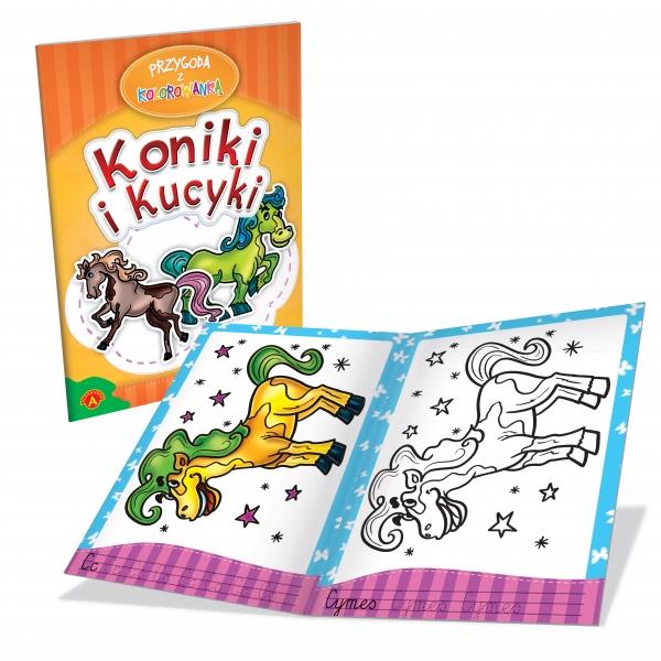 Przygoda z kolorowanką to seria zeszytów przybliżających dzieciom rozmaite tematy. Każdy motyw składa się z dwóch ilustracji: jednej kolorowej, będacej wzorem, i drugiej konturowej - do samodzielnego pokolorowania dla dzieci. Oprócz kolorowania dzieci również mogą ćwiczyć pisanie pierwszych liter i całych nazw postaci, czy zwierzątek.Koniki i kucyki to książeczka prezentująca dzieciom rozmaite koniki i kucyki.