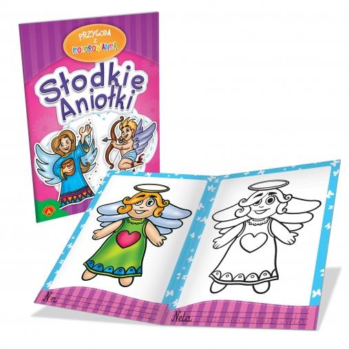Przygoda z kolorowanką to seria zeszytów przybliżających dzieciom rozmaite tematy. Każdy motyw składa się z dwóch ilustracji: jednej kolorowej, będacej wzorem, i drugiej konturowej - do samodzielnego pokolorowania dla dzieci. Oprócz kolorowania dzieci również mogą ćwiczyć pisanie pierwszych liter i całych nazw postaci, czy zwierzątek.Słodkie Aniołki to książeczka prezentująca dzieciom rozmaite słodkie aniołki.