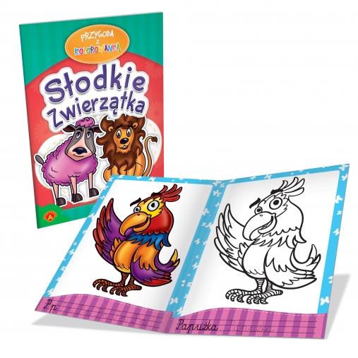 Przygoda z kolorowanką to seria zeszytów przybliżających dzieciom rozmaite tematy. Każdy motyw składa się z dwóch ilustracji: jednej kolorowej, będacej wzorem, i drugiej konturowej - do samodzielnego pokolorowania dla dzieci. Oprócz kolorowania dzieci również mogą ćwiczyć pisanie pierwszych liter i całych nazw postaci, czy zwierzątek.Słodkie Zwierzątka to książeczka prezentująca dzieciom rozmaite słodkie zwierzątka.