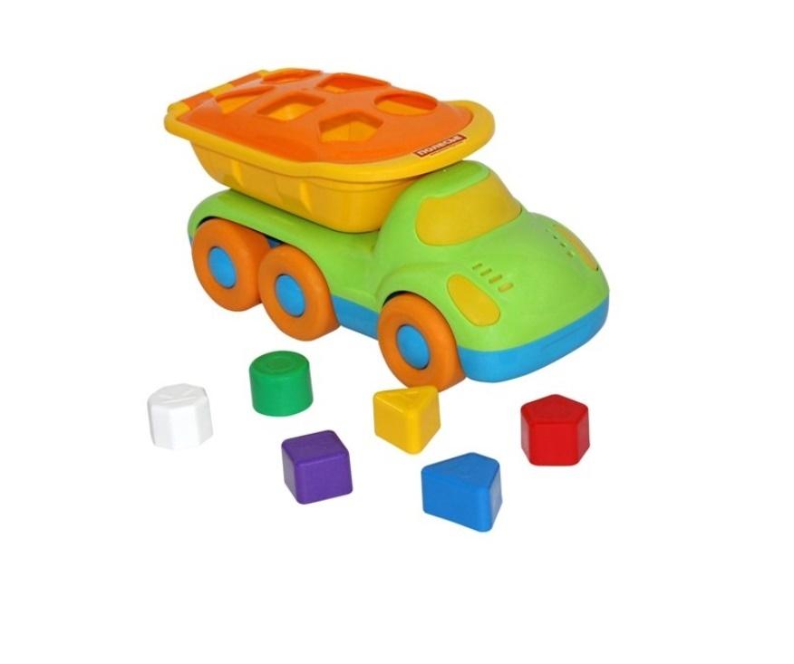 Auto długością 30 cm. Samochody serii Przyjaciel przeznaczone do zabaw w domu i podwórku. Mają zaokrąglone kąty bezpieczne dla malutkich dzieci. W serii są: wywrotka, straż pożarna, samochody z cysterną, z przyczepą i inne. Wywrotka-sorter ze skrzynią ładunkową ma pokrywę z 6 dziurkami dla wrzucania klocków odpowiedniej formy. Wiek 1+