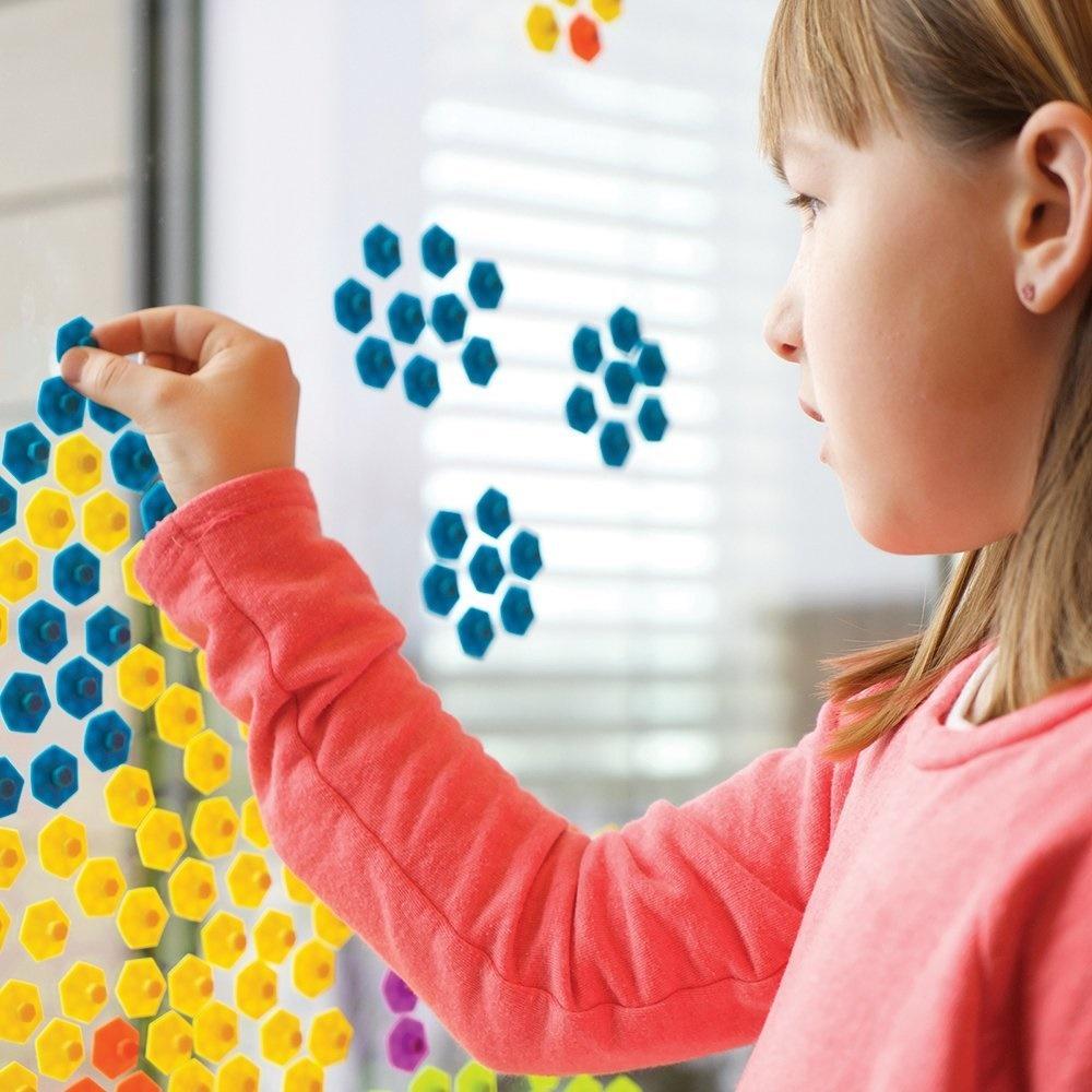 Przyklejaj i odklejaj, projektuj, twórz, układaj i dekoruj. Tworzenie obrazów przez przyklejanie małych Przyssawek Pop'emz do każdej gładkiej powierzchni to świetna i kreatywna zabawa. Sześciokątne Przyssawki Pop'em układają się jak małe piksele, dzięki którym można stworzyć dokładne i kolorowe obrazki.