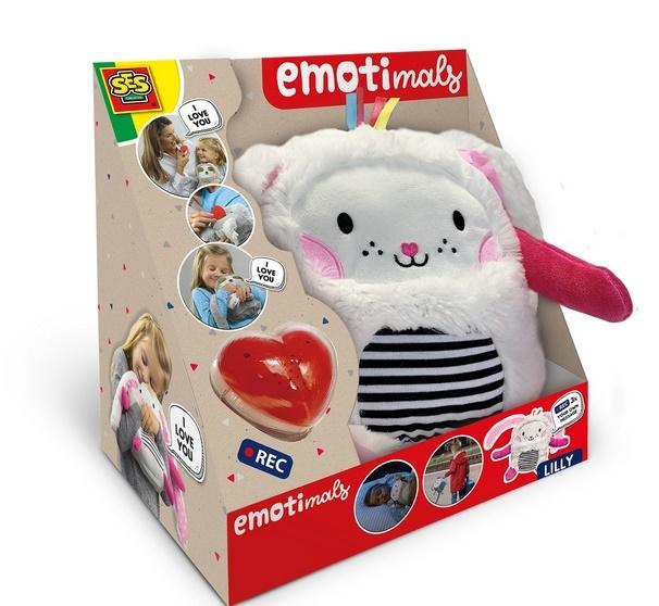 Emotimals zawiera specjalne serduszko. To serduszko służy do nagrania dla twojego dziecka wiadomości. Możesz nagrać 3 różne wiadomości, które mogą sprawić przyjemność Twojemu dziecku, ale przede wszystkim są to wiadomości osobiste takie jak: kocham cię, tęsknię za tobą.... Z Emotimals dziecko zawsze będzie słyszeć zaufany głos. Nawet kiedy rodzica lub przyjaciela nie ma w pobliżu. Idealna zabawka zarówno do zasypiania, na co dzień do zabawy jak i na pierwszy dzień w przedszkolu czy szkole.