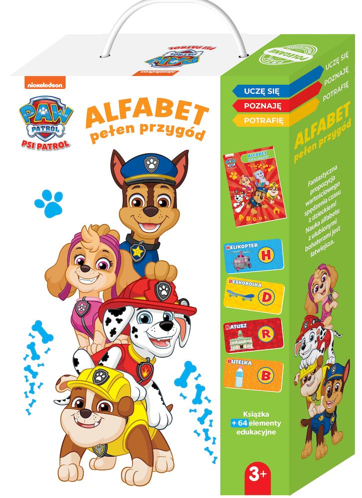 Opis produktuZasady bezpieczeństwaEdukacyjna seria produktów 'Uczę się, poznaję, potrafię' z uwielbianymi przez dzieci bohaterami Psiego Patrolu. W kartonowym pudełku z rączką poza książką znajdziemy elementy edukacyjne wspierające rozwój przedszkolaka w najważniejszych obszarach. W pudełku ksiażka 'Alfabet pełen przygód' oraz 64 elementy edukacyjne do nauki alfabetu. To fantastyczna propozycja na wspólne spędzanie czasu w połączeniu z wyśmienitą zabawą. Idealne także na prezent! x