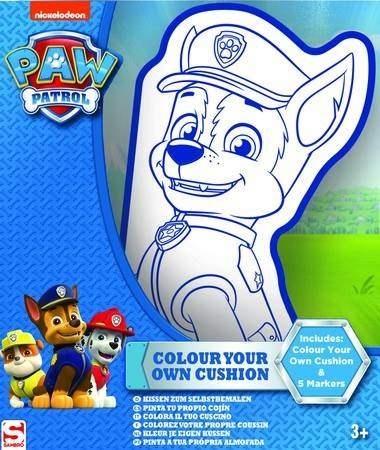 Poduszka chase do kolorowania - Psi patrol. W zestawie poduszka do kolorowania, 5 flamastrów i kryształki ozdobne.