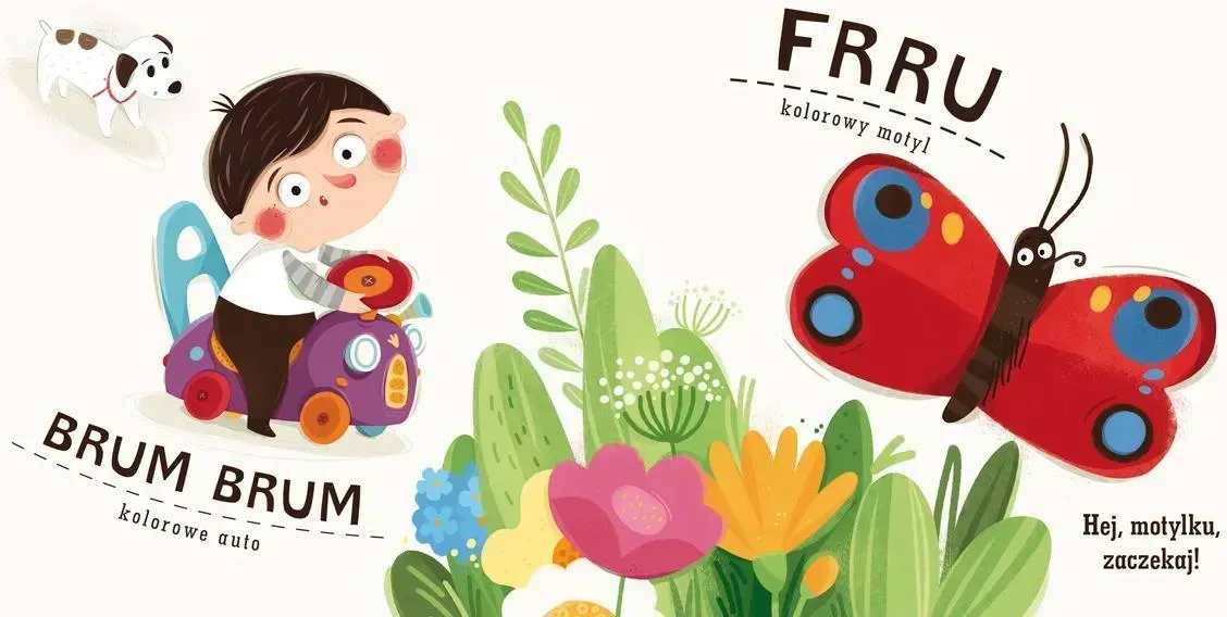 Opis produktuZasady bezpieczeństwaJaki piękny kolorowy motyl! Pucio nie posiada się z zachwytu! Ale co to? Hej, motylku, zaczekaj! Pucio biegnie za umykającym motylem, poznając przy tym kolory w swoim otoczeniu. Naucz się ich razem z Puciem i poszukaj na ilustracjach! Przy okazji odkryj różne dźwięki, które możesz usłyszeć w parku, na łące i na placu budowy - powtarzaj je i baw się dobrze! Ta przeznaczona już dla rocznych dzieci interaktywna książka zapoznaje małych czytelników z podstawowymi kolorami i wyrazami dźwiękonaśladowczymi. Dr n. hum. Marta Galewska-Kustra - mama, logopedka i pedagożka dziecięca, pedagożka twórczości, pisarka. Zajmuje się rozwijaniem kreatywności oraz terapią opóźnionego rozwoju mowy i wad artykulacyjnych u dzieci. Wieloletnia pracowniczka naukowa Akademii Pedagogiki Specjalnej im. Marii Grzegorzewskiej w Warszawie. Autorka bestsellerowej serii książek wspierających rozwój mowy dziecka "Uczę się mówić, wymawiać, opowiadać". Każdą wolną chwilę poświęca na spisywanie nowych przygód, które dyktują jej mucha Fefe i Pucio. Joanna Kłos ukończyła grafikę na Akademii Sztuk Pięknych w Krakowie, dyplom obroniła w Pracowni Projektowania Plakatu. Przez kilkanaście lat pracowała jako graficzka, by wreszcie zostawić "pracę na etacie" i zająć się ilustracją. Wspólnie z siostrą prowadzi pracownię lalek Kalikayo. Uwielbia czekoladę z pomarańczą i piesze wyprawy ze swoimi psami. Powyższy opis pochodzi od wydawcy. x