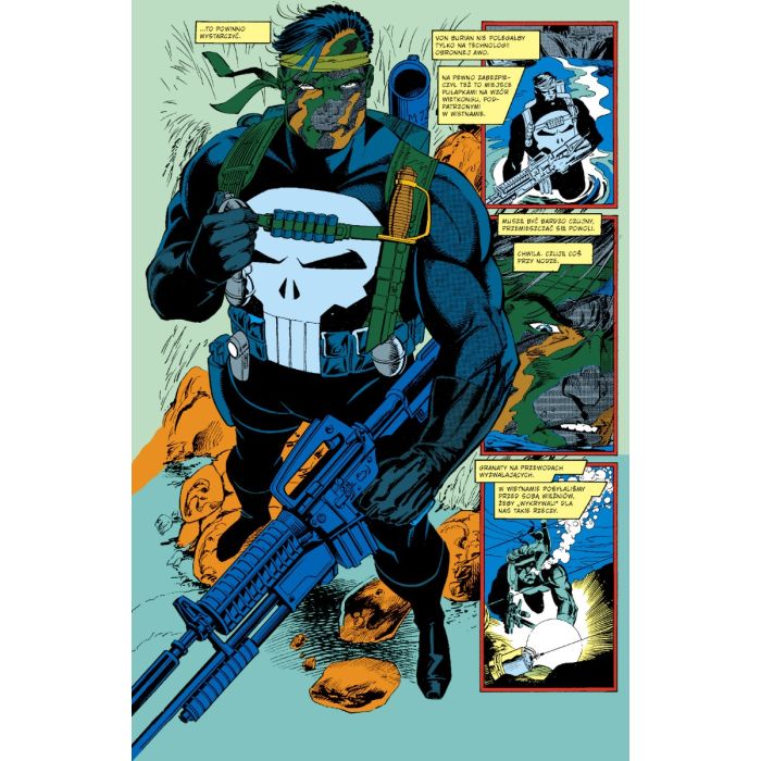 „Punisher. Dziennik wojenny” to pierwszy w historii spin-off głównej serii o słynnym mścicielu, który walczy z przestępczością bez litości i kompromisów. Pierwsze numery tego cyklu stworzyli scenarzysta Carl Potts i rysownik Jim Lee – późniejsza legenda komiksu. To idealna propozycja nie tylko dla fanów postaci Franka Castle’a, lecz także dla miłośników klasycznego amerykańskiego komiksu lat 80. i 90. ubiegłego wieku.