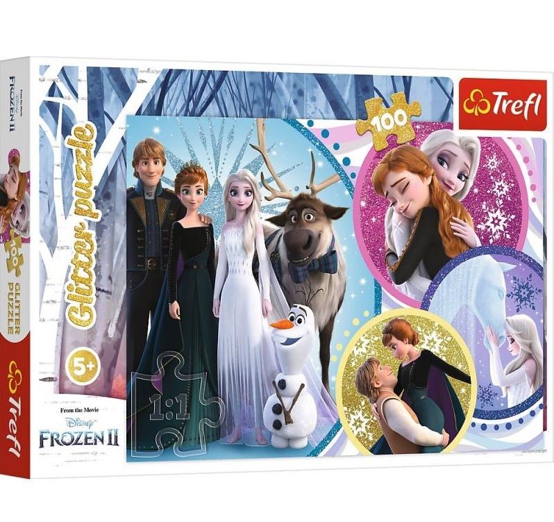 Puzzle 100 brokatowe W blasku miłości Kraina lodu 2