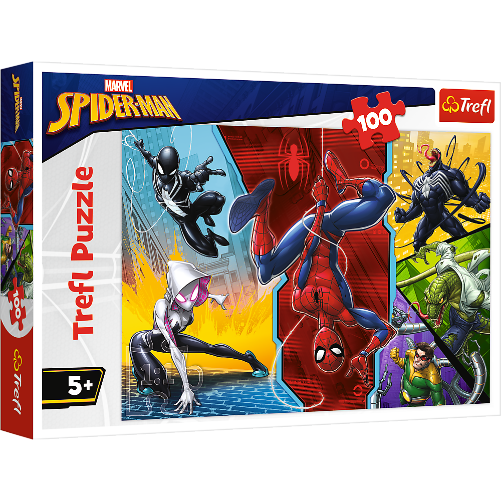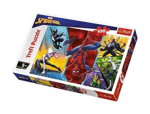 Puzzle składające się ze 100 elementów, zaprojektowaną z myślą o wszystkich fanach i fankach Spider-Mana. Po ułożeniu układanki powstanie obrazek o wymiarach 410x275mm. Produkt został wykonany z wysokiej jakości materiałów, z zastosowaniem specjalnego kalandrowanego papieru odbijającego światło, co ułatwia układanie. Produkt został wyprodukowany w Polsce, a do produkcji zostały użyte materiały ekologiczne. x
