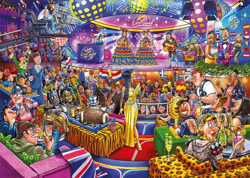 Dobry wieczór puzzlerzy, dzwoni Wasgij! Trwa niesamowity Konkurs Eurosound, w którym muzycy z całego świata rywalizują o zapewnienie najbardziej spektakularnego występu wieczoru. Czy obecny występ zaczyna tracić tłumy, czy też będą mieli niespodziankę, która zapewni sędziom maksymalną liczbę punktów? Użyj swojej wyobraźni i wskazówek znajdujących się na pudełku, aby ułożyć w całość to, co stanie się dalej. To jest scena, którą będziesz musiał rozwiązać.