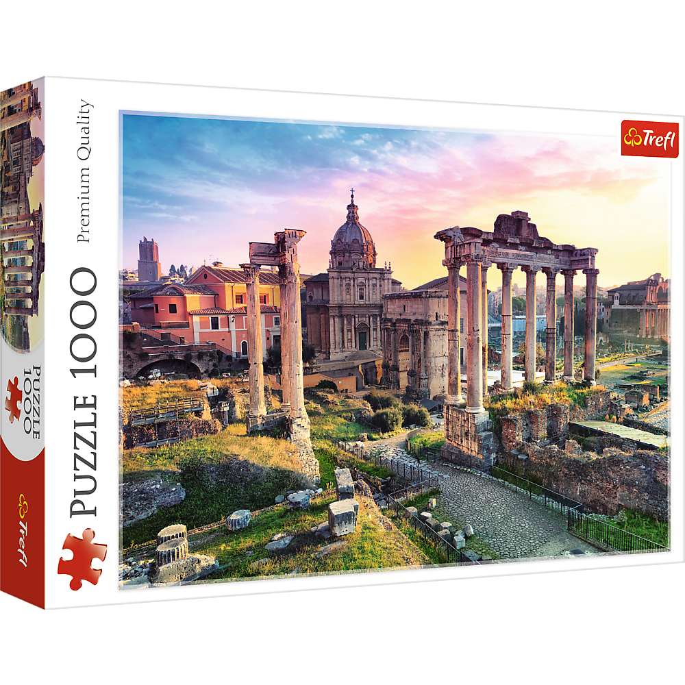 Opis produktuZasady bezpieczeństwaPuzzle 1000 elementów z widokiem na Forum Romanum. Po ułożeniu powstanie obrazek o wymiarach 68x48 cm. Wysoką jakość, nasycenie kolorów i bezpieczeństwo układania zapewnia kalandrowany papier odbijający światło, pokryty ekologicznymi farbami spożywczymi. x