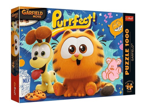 Puzzle Garfield przedstawiają bohaterów tytułowego filmu - Garfielda i Odiego. Po ich ułożeniu powstanie obraz o wymiarach 683x480 mm.