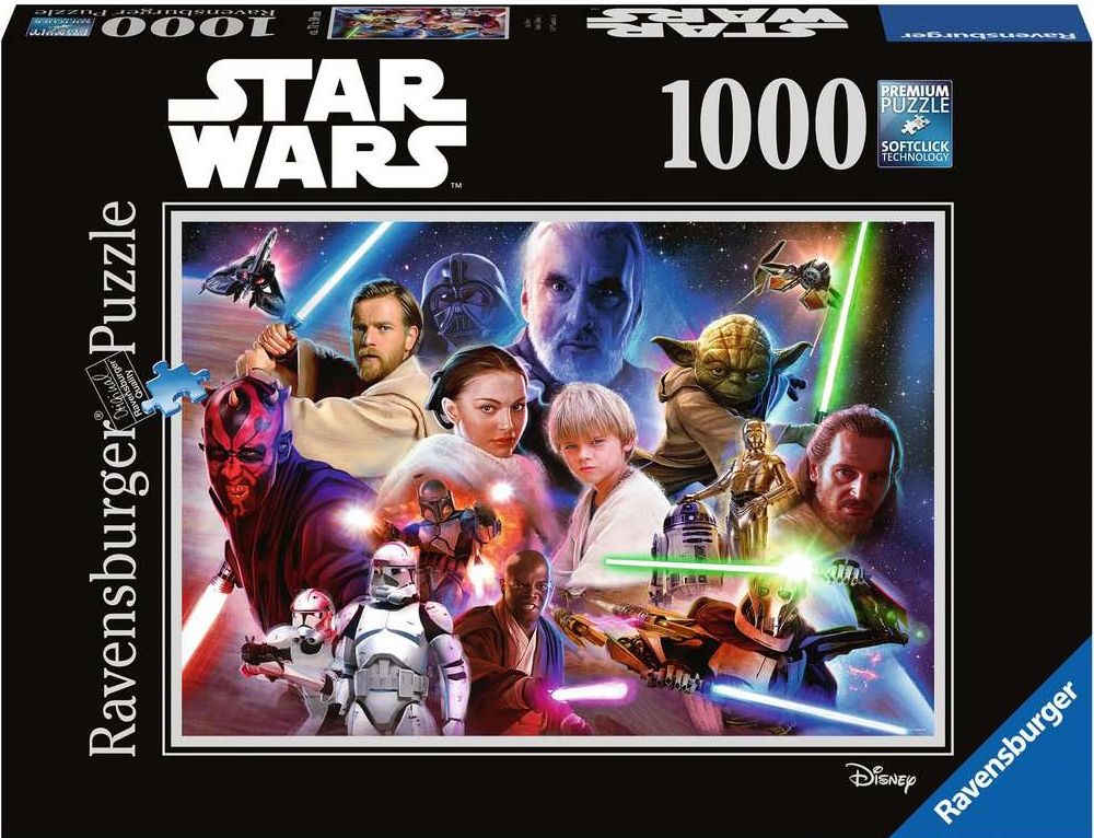 Seria puzzli 1000 elementów Ravensburger przedstawia unikalne i ciekawe do układania wzory, w tym przypadku układankę z motywem z serialu Gwiezdne Wojny - Mroczne Widmo. Zawartość i cechy zestawu: Układanka z motywem z filmu Gwiezdne Wojny - Mroczne Widmo Ilość elementów: 1000 elementów Wyraźne motywy na puzzlach dzięki zastosowaniu struktury naturalnego lnu Przeznaczone dla dzieci od 14. roku życia x