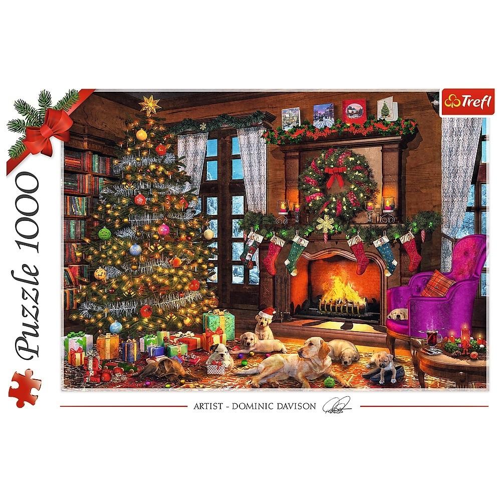 Puzzle Idą święta składające się z 1000 elementów przedstawiają świątecznie przystrojone wnętrze. Po ułożeniu powstanie obrazek o wymiarach 683x480 mm.