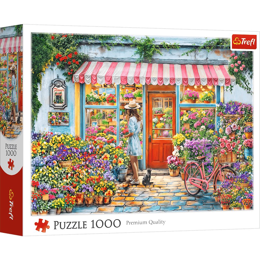 Puzzle Kwiaciarnia, składające się z 1000 elementów, przedstawiają sklep z wieloma kolorowymi kwitnącymi kwiatami. Po ich ułożeniu powstanie obrazek w rozmiarach 680x480 mm.