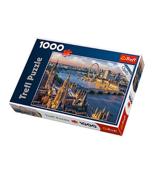 Puzzle 1000 elementów z widokiem na centrum Londynu. Po ułożeniu powstanie obrazek o wymiarach 68x48 cm. Wysoką jakość, nasycenie kolorów i bezpieczeństwo układania zapewnia kalandrowany papier odbijający światło, pokryty ekologicznymi farbami spożywczymi.