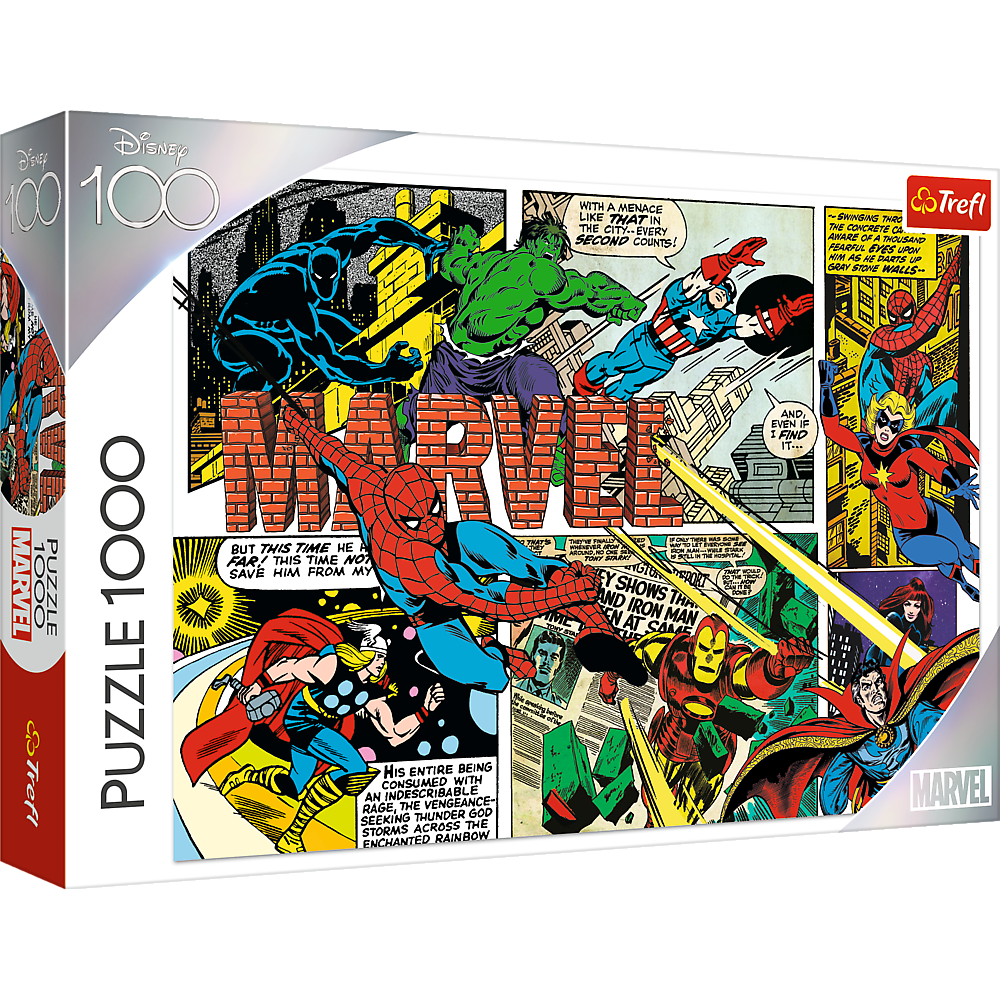 Opis produktuZasady bezpieczeństwaPuzzle 1000 elementów, idealne dla miłośników układanek, pozwolą stworzyć obrazek o wymiarach 683 x 480 mm, przedstawiający obrazki z pierwszych komiksów Marvela. Układanie puzzli niesie za sobą szereg korzyści, zarówno dla dzieci, jak i dorosłych. To skuteczny sposób na ćwiczenie pamięci, koncentracji, a także niezawodny sposób na odstresowanie się i odprężenie. Dzięki puzzlom trenujemy spostrzegawczość, ale również uczymy się cierpliwości. Ułożony przez nas gotowy obraz możemy powiesić na ścianie, a tym samym urozmaicić wnętrze naszego mieszkania. x