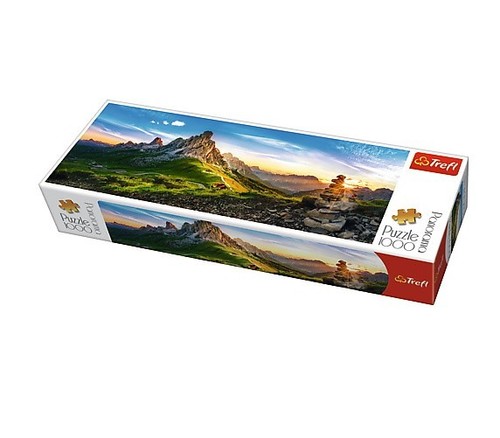 Opis produktuZasady bezpieczeństwaPanoramiczne puzzle 1000-elementowe ze zdjęciem wspaniałego widoku zachodu słońca w Dolomitach. Po ułożeniu powstanie obrazek o wymiarach 97x34 cm. Wysoką jakość, nasycenie kolorów i bezpieczeństwo układania zapewnia kalandrowany papier odbijający światło, pokryty ekologicznymi farbami spożywczymi. x