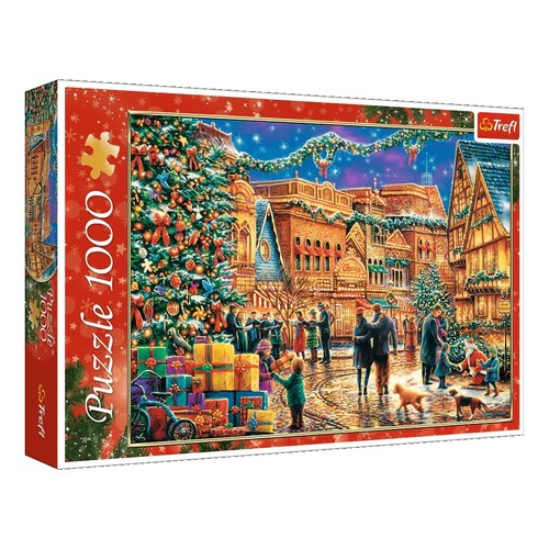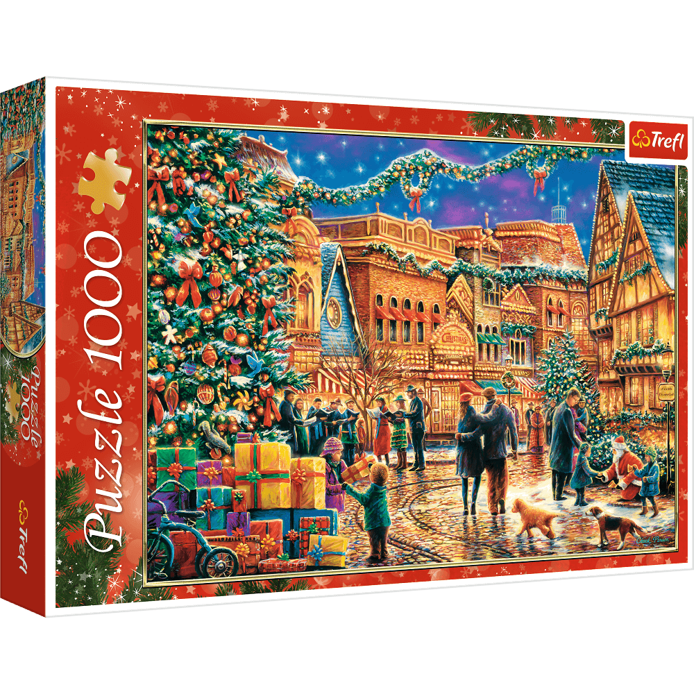 Puzzle składające się z 1000 elementów przedstawiające widok na świąteczny, bożonarodzeniowy rynek. Po ułożeniu powstanie obrazek o wymiarach 683x480 mm. Produkt został wykonany z wysokiej jakości materiałów, z zastosowaniem specjalnego kalandrowanego papieru odbijającego światło, co ułatwia układanie. Produkt został wyprodukowany w Polsce, a do produkcji zostały użyte materiały ekologiczne.