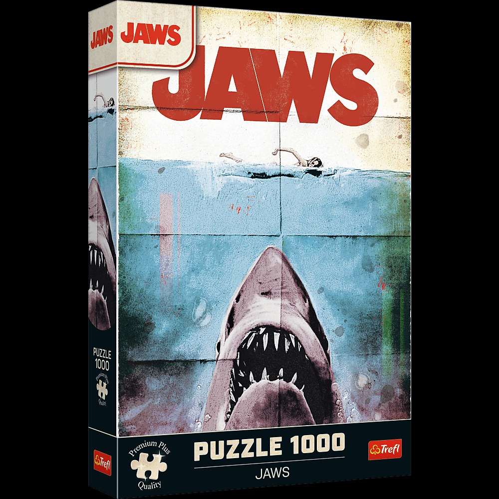 Puzzle Jaws przedstawiają kultowy plakat z filmu Szczęki. Po ich ułożeniu powstanie obraz o wymiarach 683x480 mm.