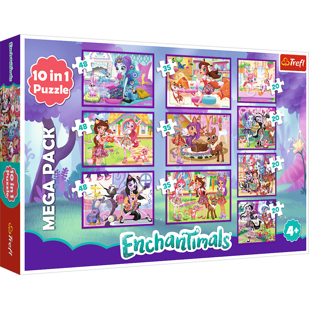 Puzzle Enchantimals 10w1 Mega Pack zostały stworzone przez cieszącą się dużym zaufaniem, polską markę Trefl. Zestaw ten powstał na podstawie animowanego serialu dla dzieci pod tytułem Enchantimals, opowiadającego o przygodach dziewcząt posiadających zwierzęce cechy, żyjących w fantastycznym świecie i opiekujących się leśnymi zwierzętami.