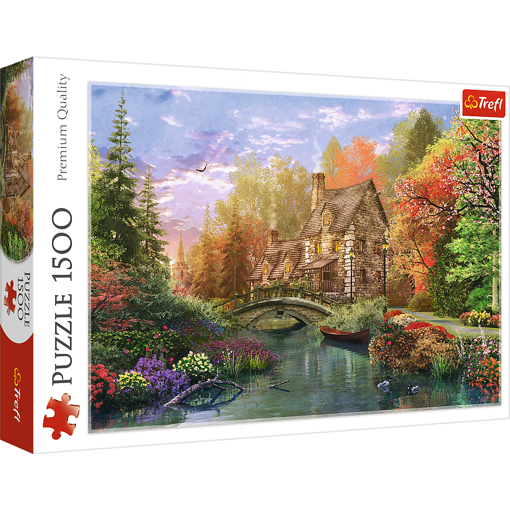 Puzzle 1500 elementów z malowniczym obrazem chatki nad wodą. Po ułożeniu powstanie obrazek o wymiarach 85x58 cm. Wysoką jakość, nasycenie kolorów i bezpieczeństwo układania zapewnia wykorzystanie materiałów ekologicznych. x