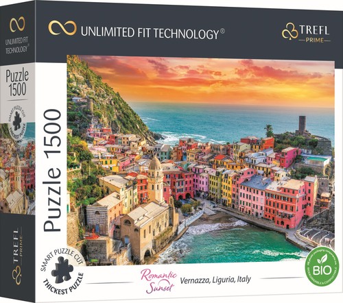Puzzle z serii Trefl Prime Unlimited Fit Technology składające się z 1500 elementów są dedykowane prawdziwym miłośnikom układanek. Puzzle przedstawiają widok na włoskie miasteczko Vernazza w Ligurii. Po ułożeniu powstanie obraz o wymiarach 850x580 mm.